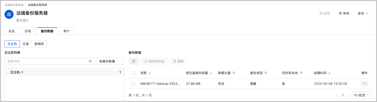 | 公有云备份服务器 | 配置信息 |